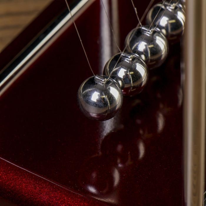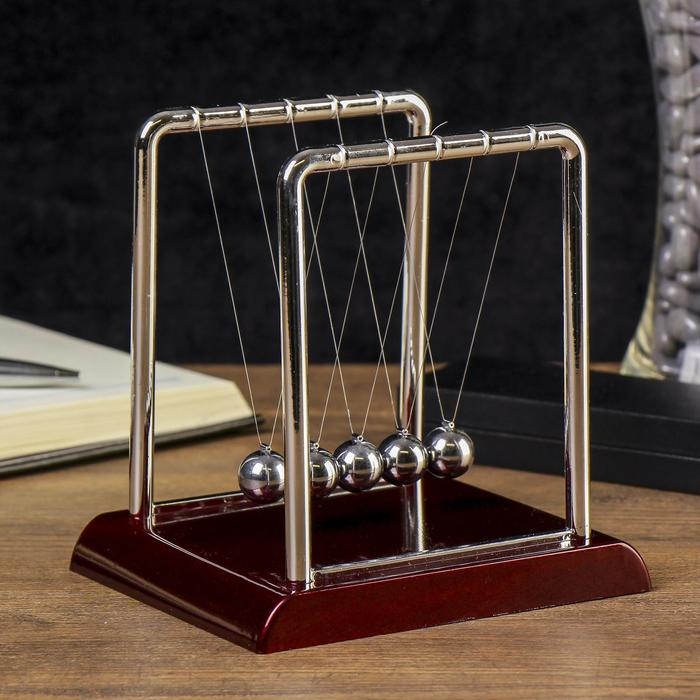 Маятник Ньютона сегодня пользуется огромной популярностью у наших клиентов. Система состоит из подставки и пяти металлических шариков, которые подвешены на леске. Для активации маятника вам необходимо отвести один шарик в сторону и отпустить его. Затем наблюдайте, как шарики с противоположной стороны начинают двигаться в зеркальном отображении с той же скоростью. Через определенное время шарики останавливаются. Продолжительность движения зависит от размера и веса шариков: чем тяжелее и больше шарики, тем дольше процесс, и наоборот.