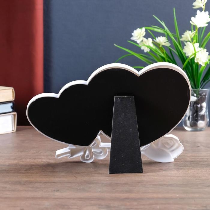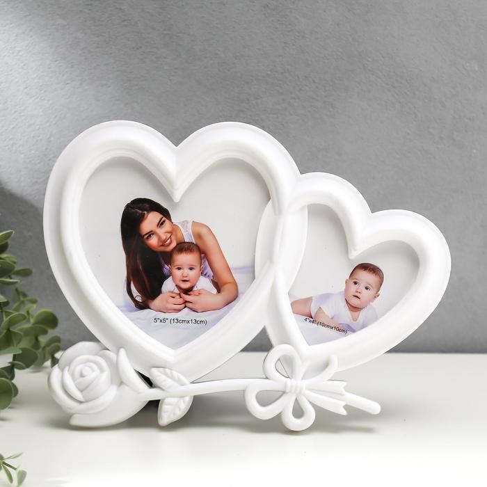 Фоторамка на 2 фото 10х10 см, 13х13 см "Двойное сердце с розой" белая 27,5х20,5 см