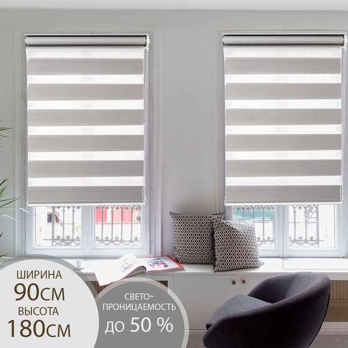 Штора рулонная «День-ночь», 90×180 см (с учётом креплений 3,5 см), цвет серый