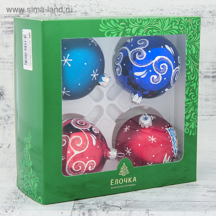 Набор новогодних шаров "Новогодняя сказка" (набор 4 шт) 7,5 см
