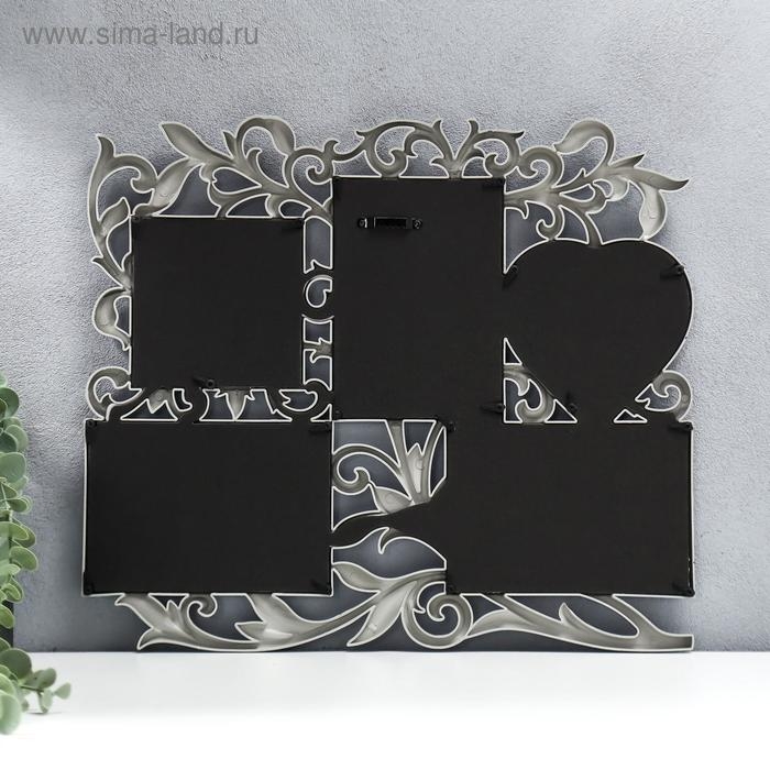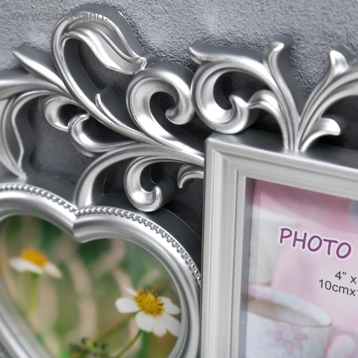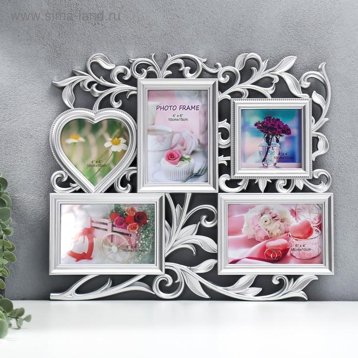 Фоторамка пластик на 5 фото 10х15 см, 10х10 см "Флористика" серебро 41,5х35 см