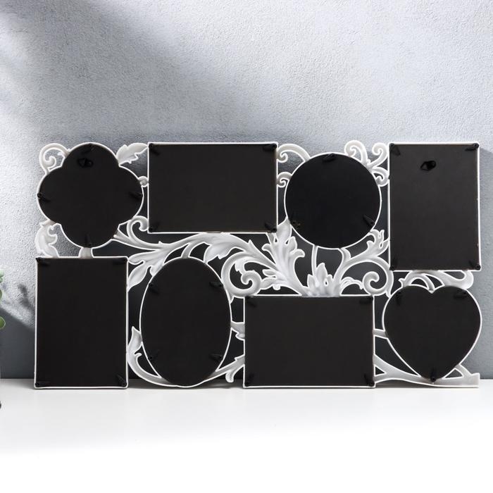 Фоторамка пластик на 8 фото 10х15 см, 10х10 см "Интерес" белая 58х32 см