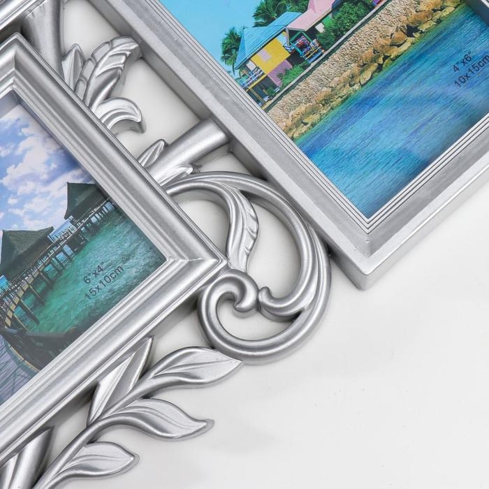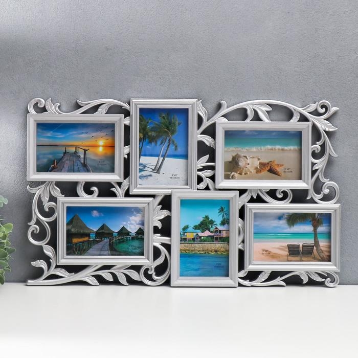 Фоторамка пластик на 6 фото 10х15 см "Вьюн" серебро 55х33 см