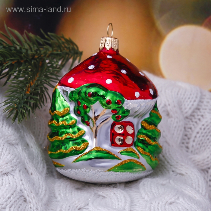 Ёлочная игрушка ручной работы "Домик-грибок" 7,4 см