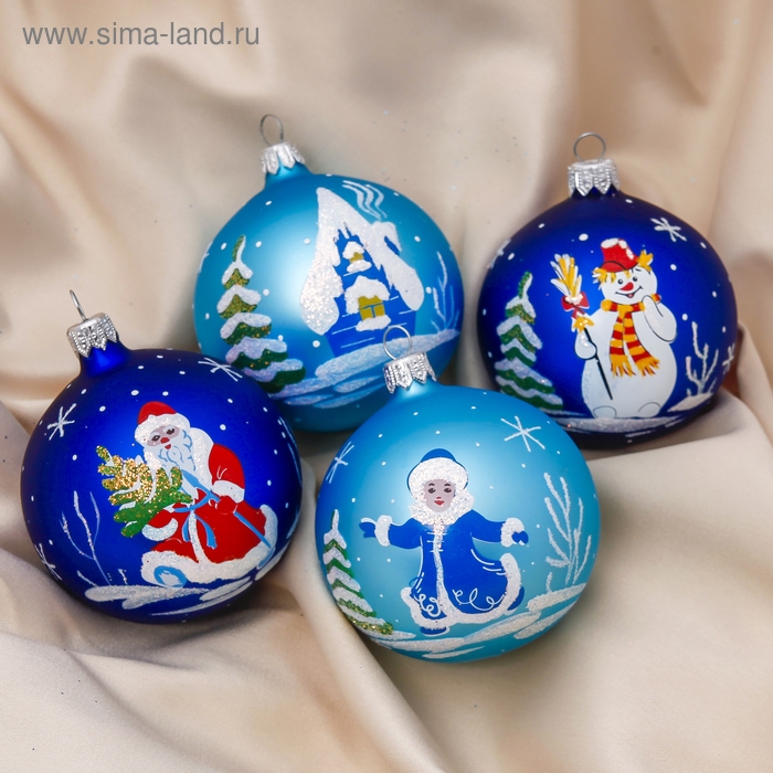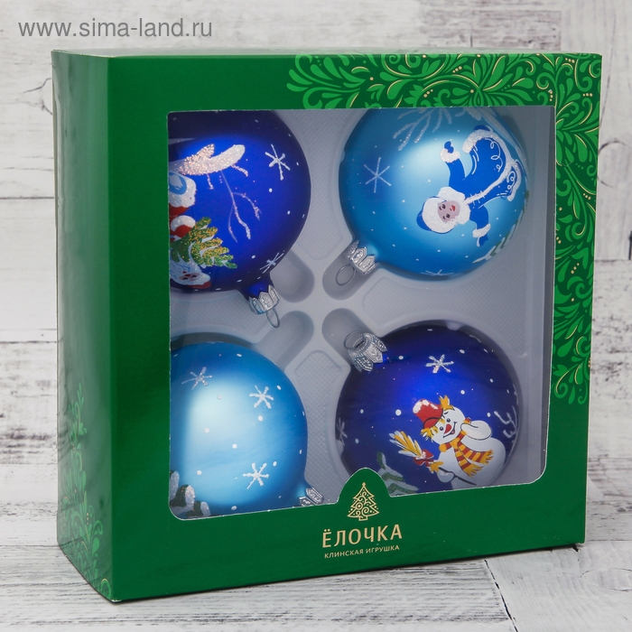 Набор новогодних шаров "В гостях у сказки" 7,5 см (набор 4 шт)
