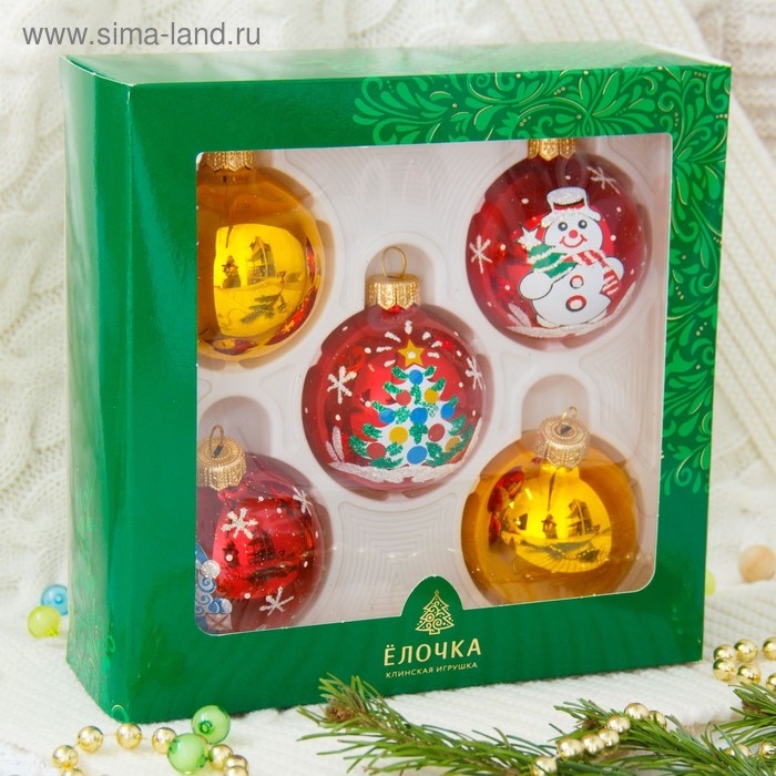 Набор новогодних шаров "Волшебство" d-6 см (набор 5 шт)
