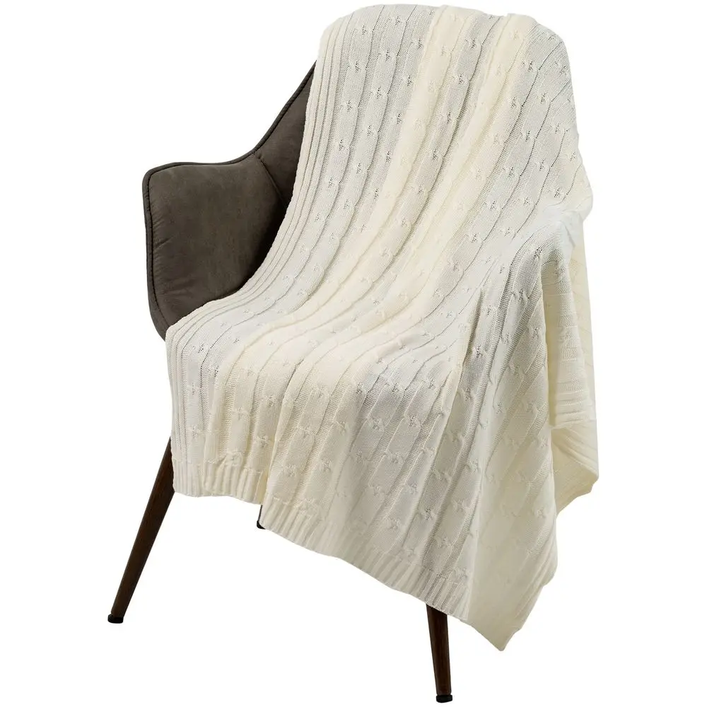 Плед мягкого натурального оттенка с ненавязчивым классическим узором «косы» добавит спокойного шика в интерьер, гармонично впишется в композицию современной гостиной или спальни.