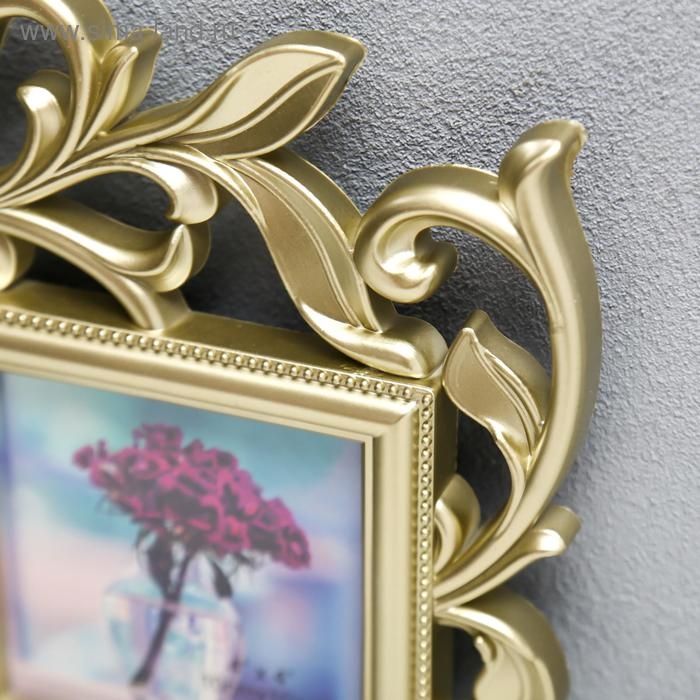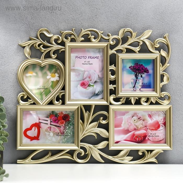 Фоторамка пластик на 5 фото 10х15 см, 10х10 см "Флористика" золотая 40х36 см