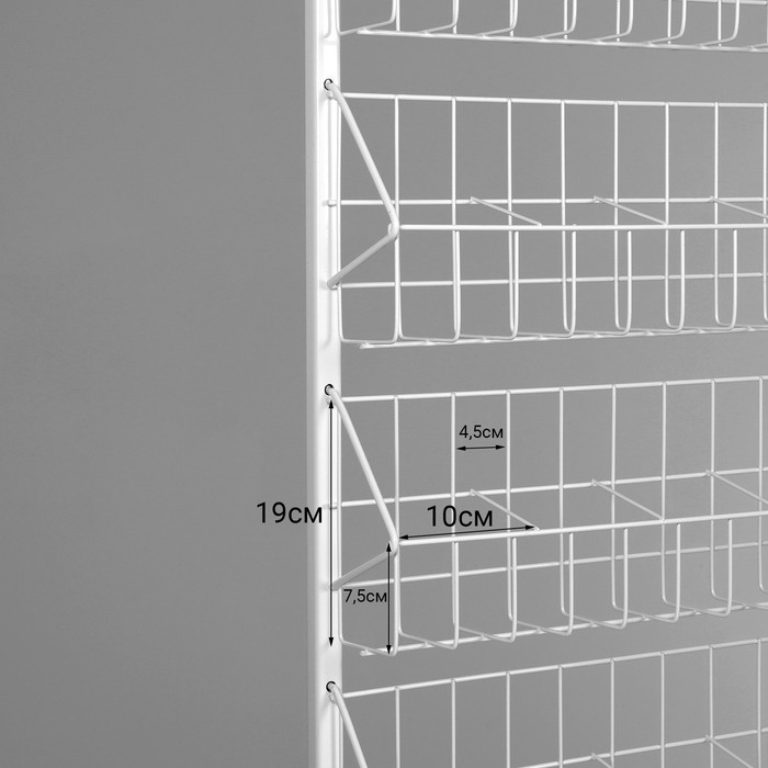 Стойка для семян 7 корзин, 60×25×160 см, размер кармана 10×7×7,5, цвет белый