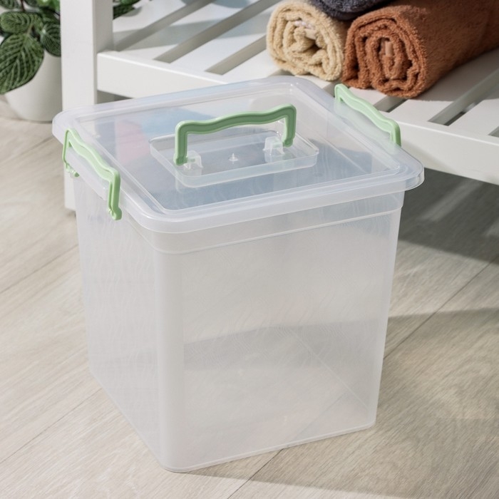 Контейнер для хранения с крышкой «Кип», 15,5 л, 37,5×28,5×23 см, цвет чёрный прозрачный