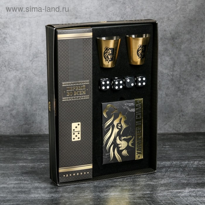 Набор «Характер и сила», карты 36 шт., домино, стопки 30 мл 2 шт., кости игральные 4 шт.