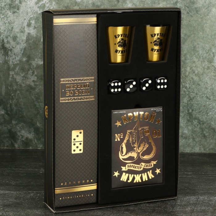 Набор «Крутой мужик», карты 36 шт., домино, стопки 30 мл 2 шт., кости игральные 4 шт.