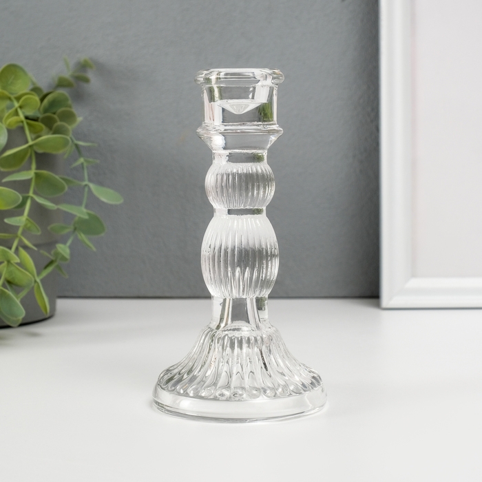 Подсвечник стекло на 1 свечу "Колонна с шарами" прозрачный 15,5х8х8 см