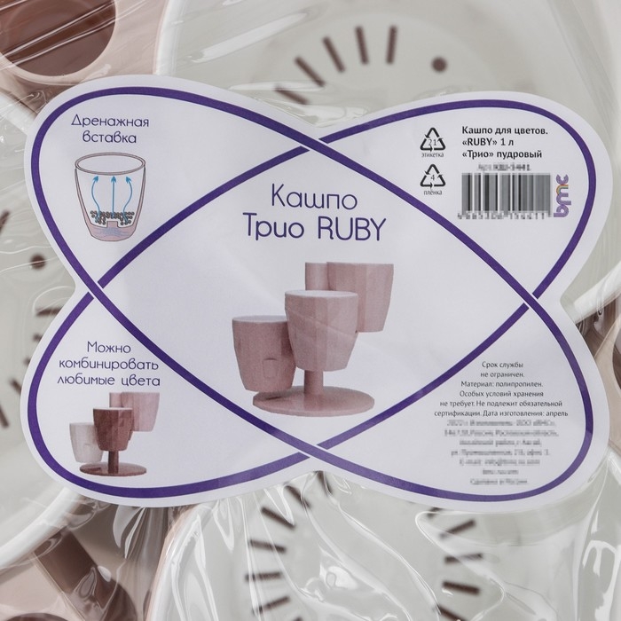 Кашпо многоярусное Ruby «Каскад», 3 шт, 1 л, цвет пудровый