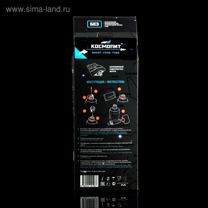 Сытные и вкусные блюда в проверенной тяжёлыми условиями космоса упаковке станут отличной альтернативой сухпайку во время выхода на природу, на охоте или рыбалке. Недостаток места, отсутствие костра и даже экстремальная погода больше не помешают обеду. Вам нужно будет просто разогреть тюбик на портативном нагревателе из комплекта и насладиться вкусной пищей.