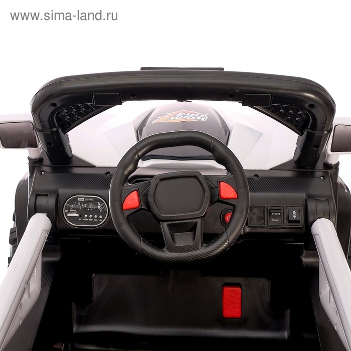 - Электромобиль оснащён пультом дистанционного управления, благодаря которому родители могут контролировать скорость и направление движения игрушки. Это очень удобно, когда ребёнок ещё маленький и не может самостоятельно управлять машинкой.