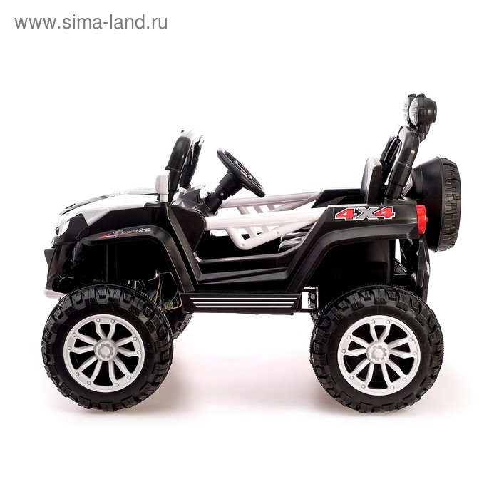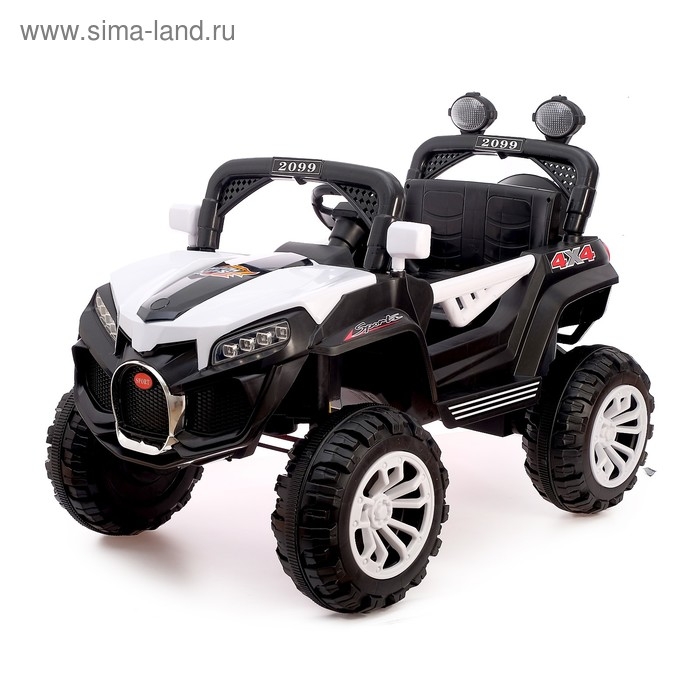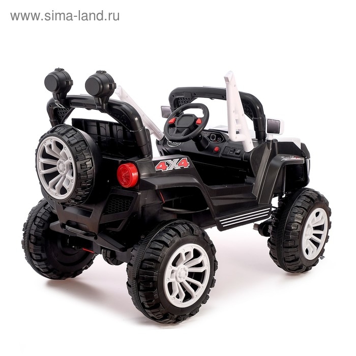 - Пластиковые колёса обеспечат высокую проходимость. Поэтому электромобиль преодолеет даже бездорожье.