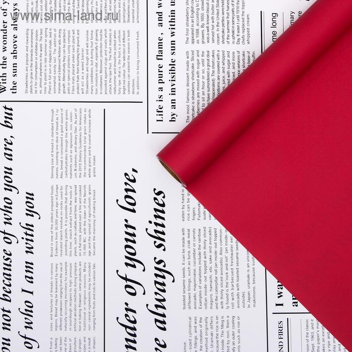 Плёнка матовая двухсторонняя "Газета на белом" красный, 0,58 х 10 м