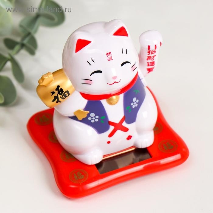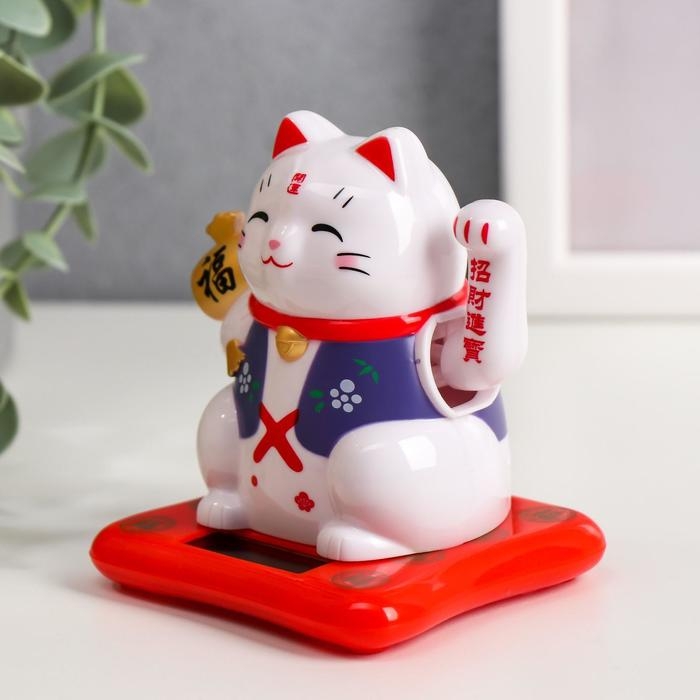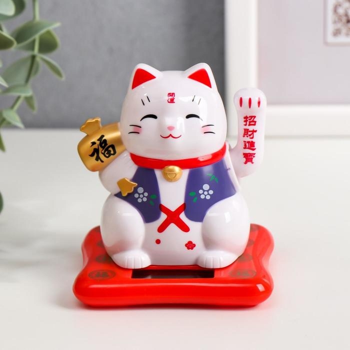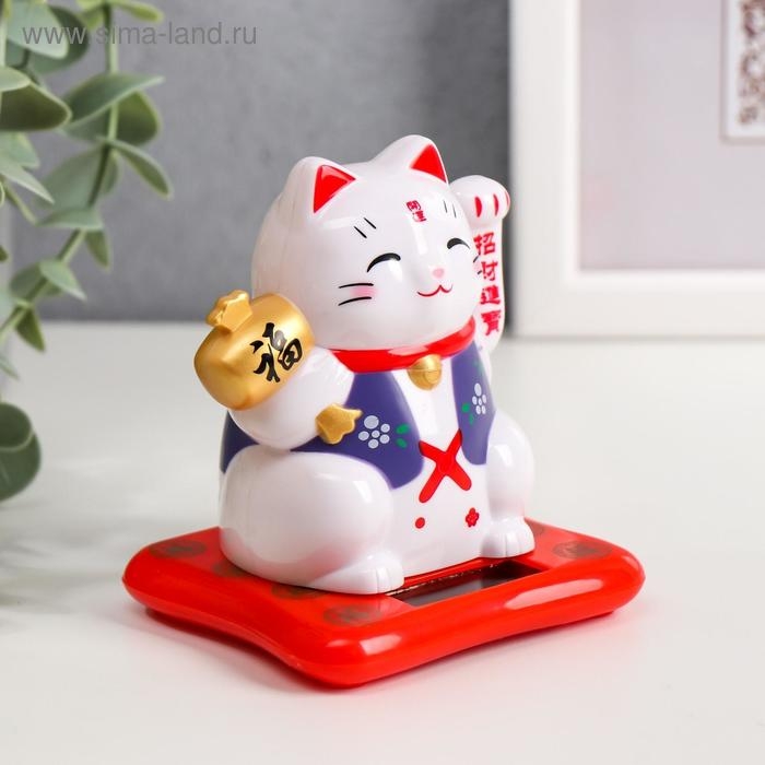 Маятник пластик от солнечной батареи "Кот Манэки-нэко в жилетке" МИКС 9х7,5х7 см
