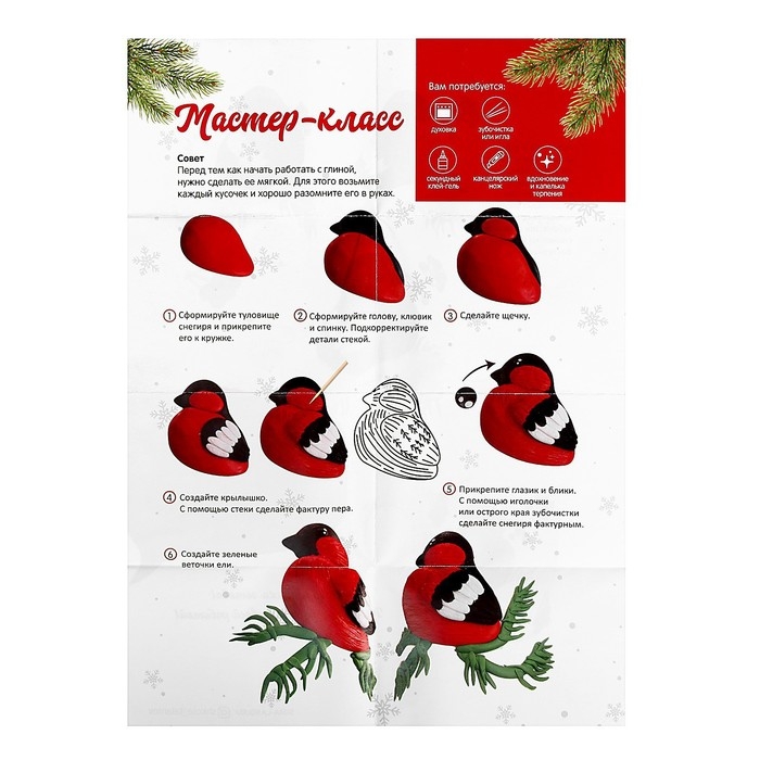 Новогодний набор для декора кружки полимерной глиной «Новый год! Снегирь на ветке»