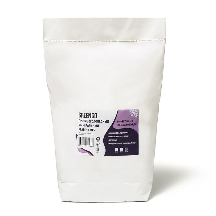 Реагент противогололёдный (мраморная крошка, галит, хлористый кальций), 5 кг, работает при —30 °C, Greengo