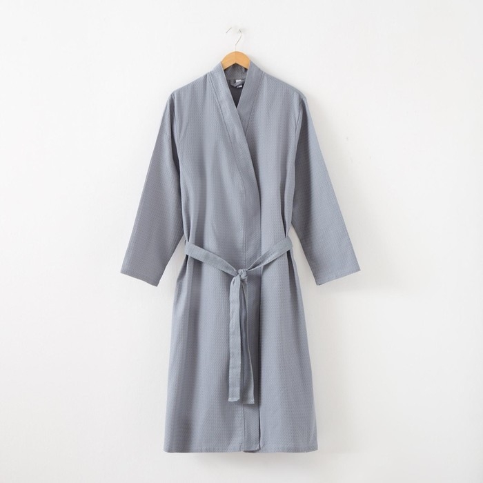 Халат вафельный мужской удлин Экономь и Я размер 58-60, цвет серый, 100% хлопок, 200г/м2