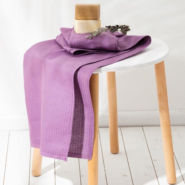 Полотенце вафельное банное Экономь и Я 80х150 см, цвет лаванда, 200 гр/м2, 100% хлопок