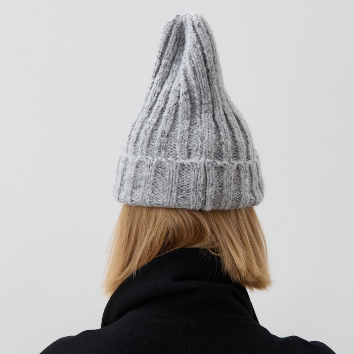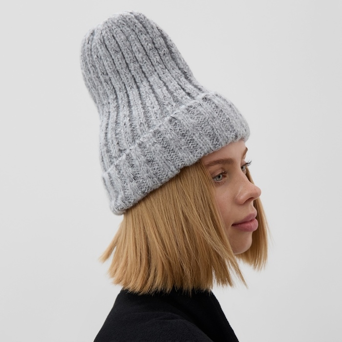 Шапка женская MINAKU с подворотом, размер 54-56, цвет серый