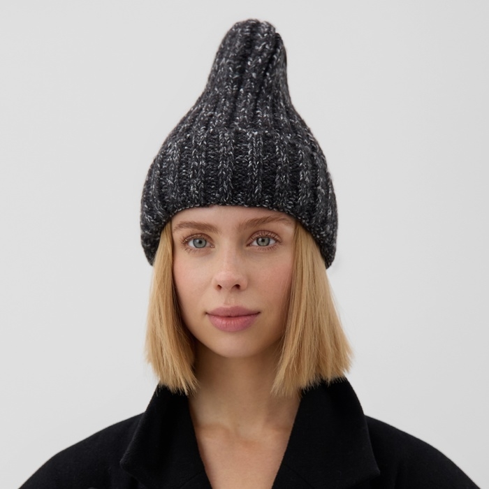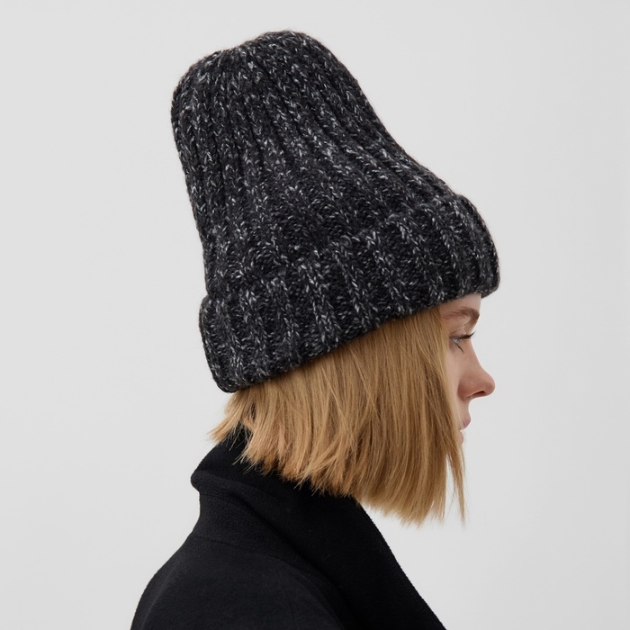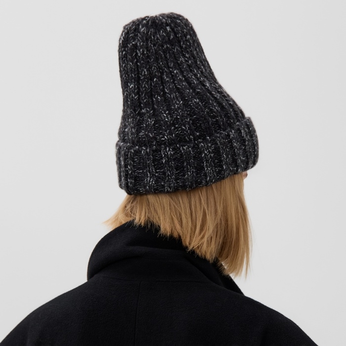 Шапка женская MINAKU с подворотом, размер 54-56, цвет черный