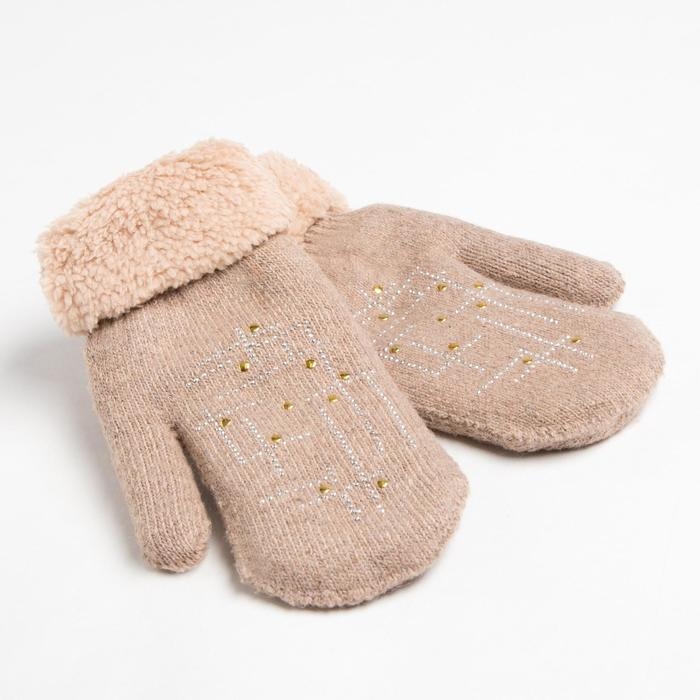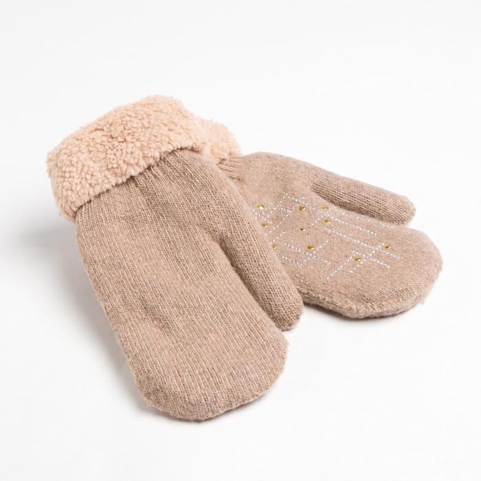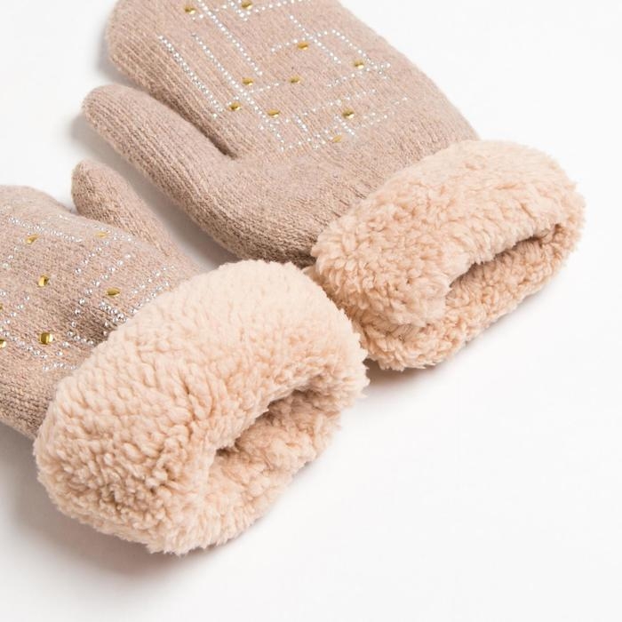 Варежки женские MINAKU однотонные со стразами, р-р 23 см, цв.бежевый