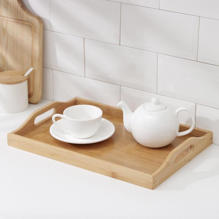 Универсальный поднос добавит уюта и тепла в ваш дом. С помощью такого деревянного подноса вы можете подавать красивый завтрак как с сервировкой на стол на кухне, так и с подачей подноса в кровать или на диван, а ваши романтичные вечера с вином станут ярче, если вы разложите закуски из мяса, сыров и фруктов на деревянный поднос. Также вы можете сервировать блюда для ужина непосредственно на декоративном подносе или же использовать его для суши
