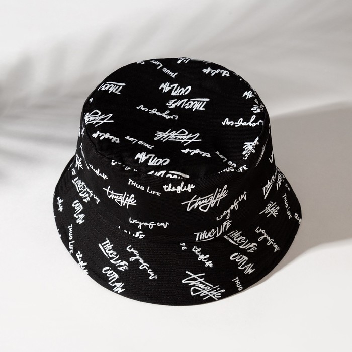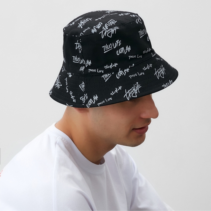 Панама двусторонняя MINAKU с надписями, цвет чёрный, размер 58