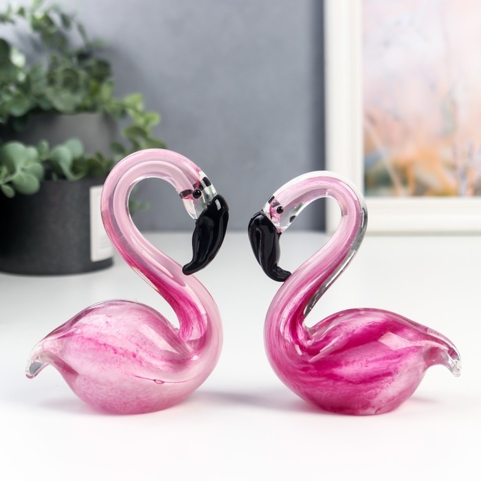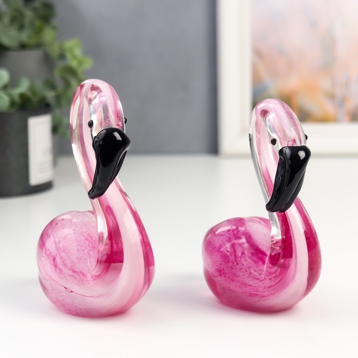 Сувенир стекло "Фламинго" под муранское стекло набор 2 шт 12х6х20 см