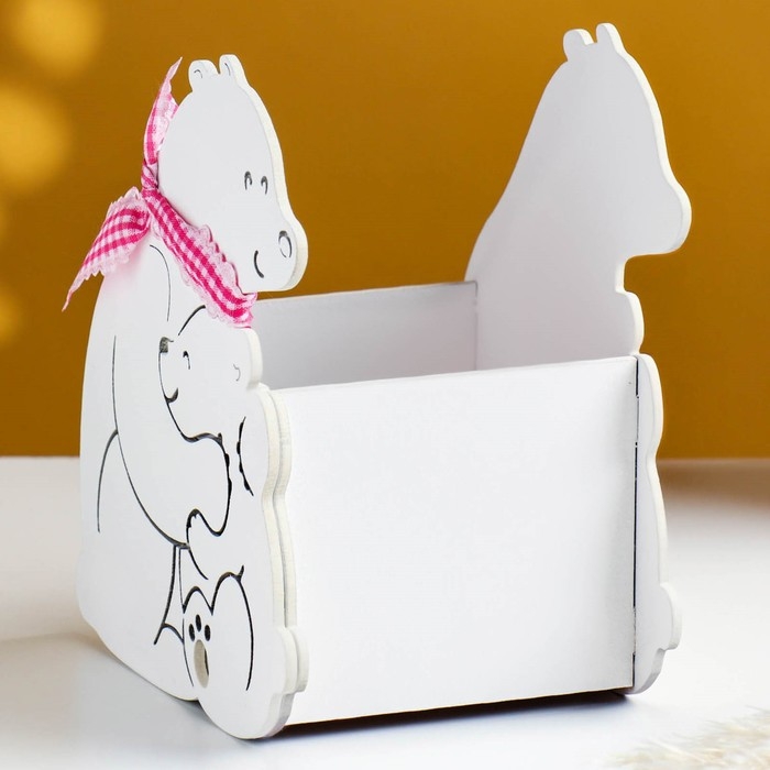 Кашпо деревянное "Мамино тепло" 12х9,5х15 см белый