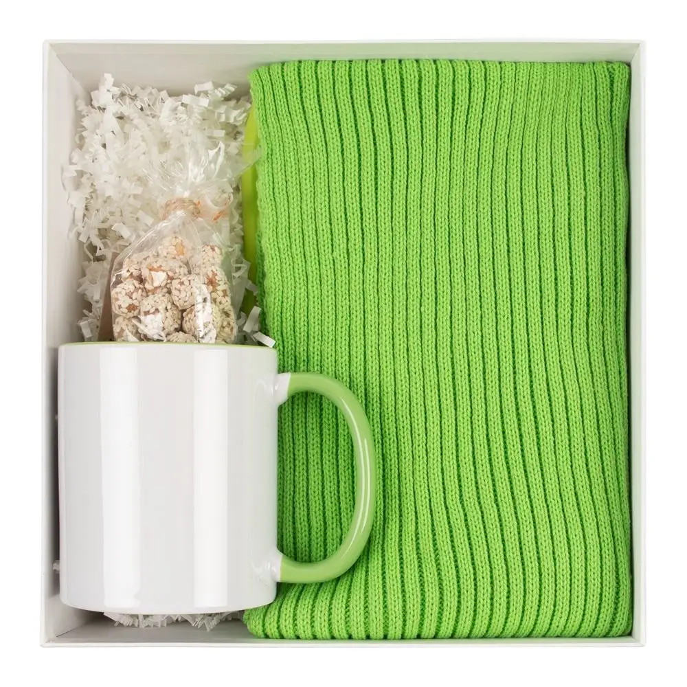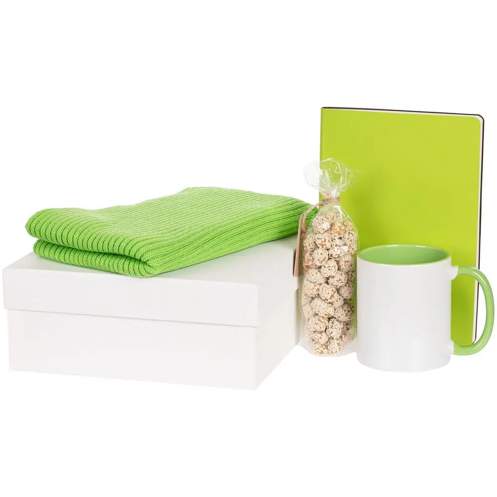 Оригинальный стильный шарф станет модным акцентом в деловом гардеробе и согреет в прохладную погоду. Яркая кружка идеально подойдет для любимых напитков и создаст атмосферу уюта даже во время напряженного рабочего дня. А для дополнительного заряда энергии в наборе есть вкусный и полезный снек, который поможет поддержать бодрость духа.