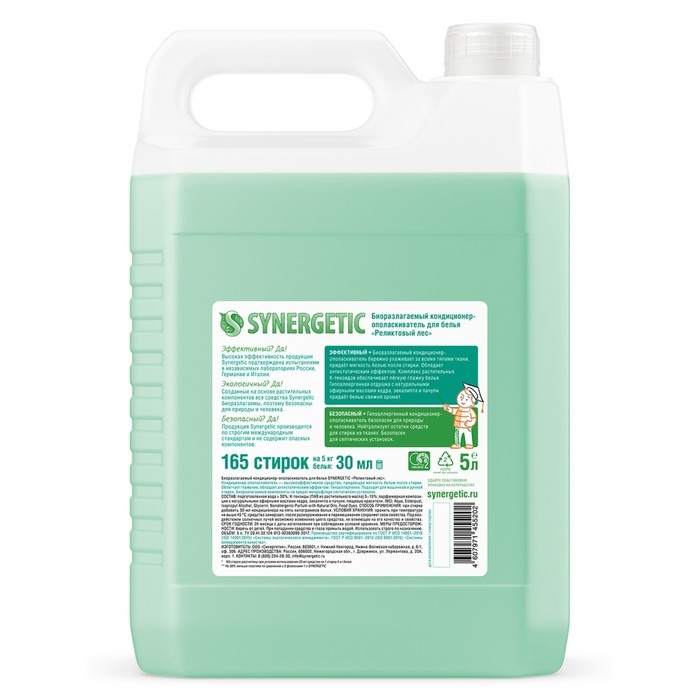 Биоразлагаемый кондиционер-ополаскиватель для белья SYNERGETIC "Реликтовый лес" – высокоэффективное средство, бережно ухаживающее за всеми типами ткани, в том числе деликатными, и придающее особую мягкость и нежность белью после стирки.