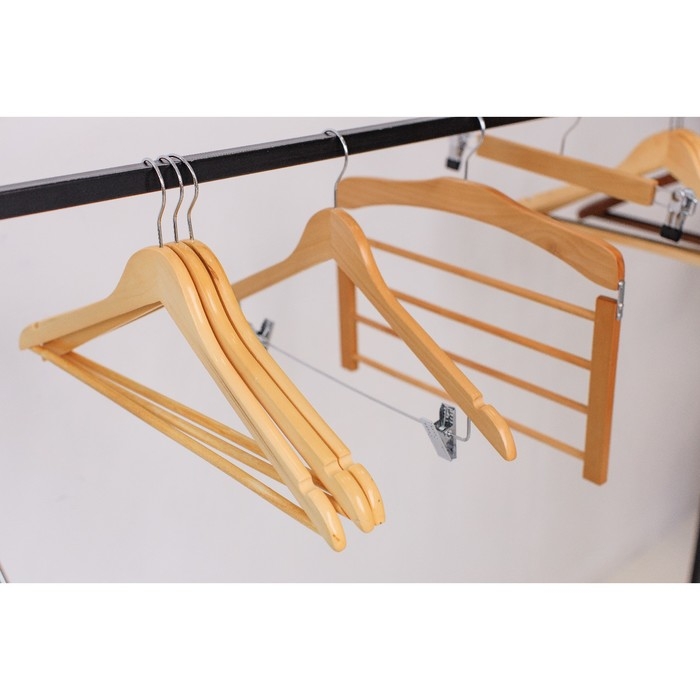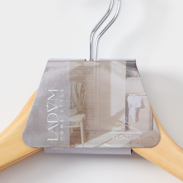 Плечики - вешалки для одежды LaDо́m Bois, 44,5×1,2×23 см, 3 шт, с перекладиной, широкие плечики, деревянная сорт А