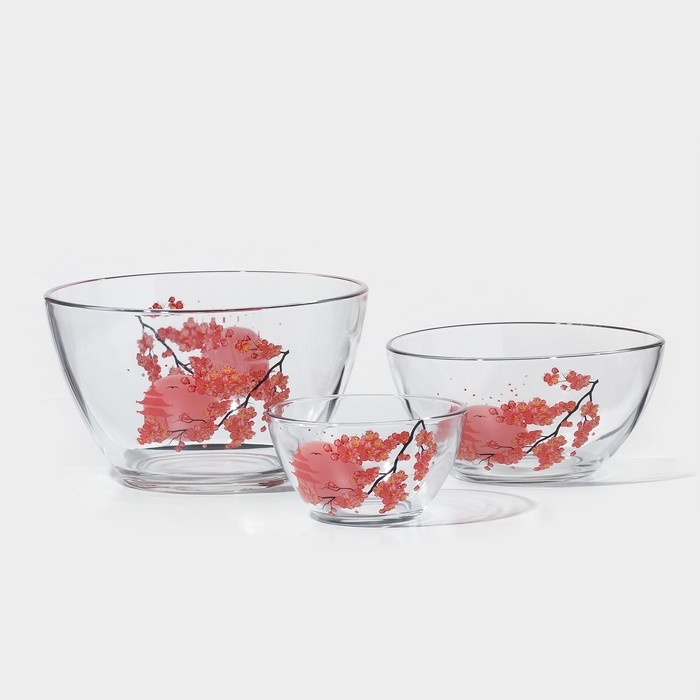 Набор салатников «Веточка сакуры», стеклянный, 3 шт: 1.75 л, 0.8 л, 0.25 л