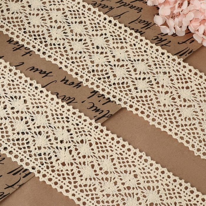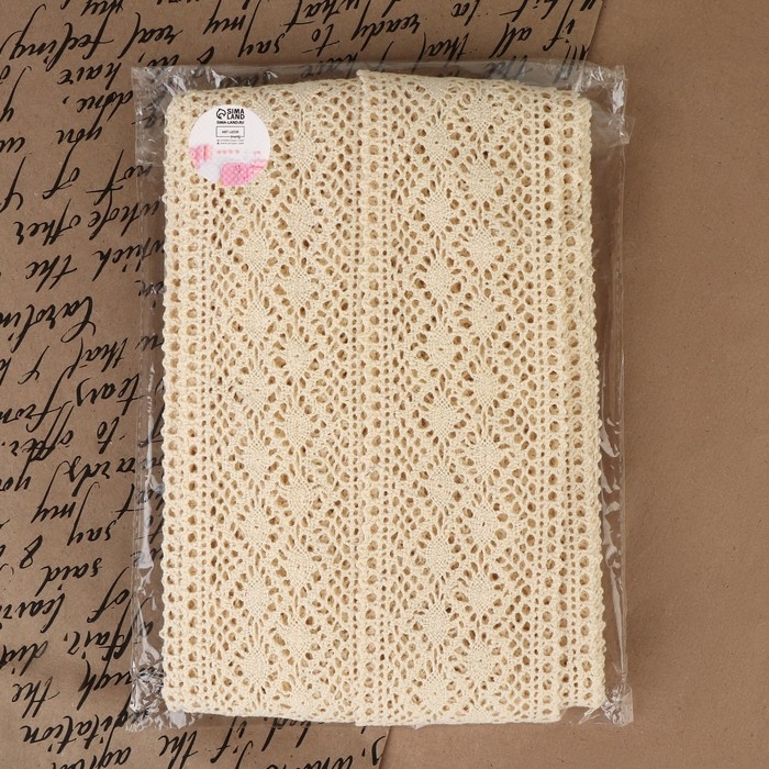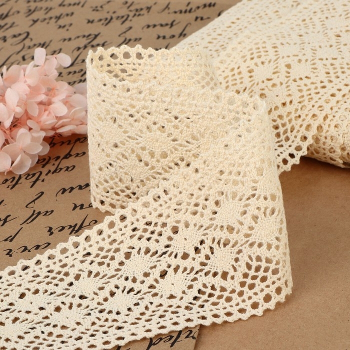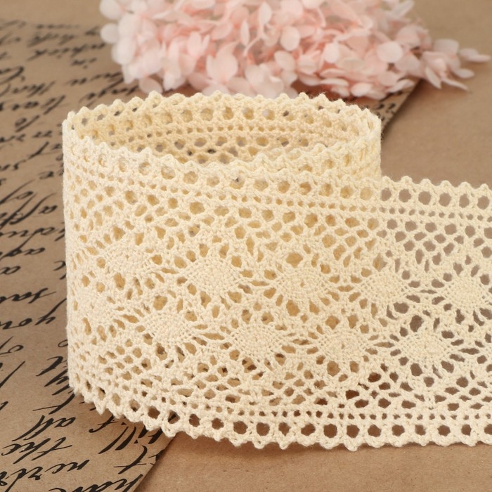 Кружево вязаное, 70 мм × 10 ± 1 м, цвет бежевый
