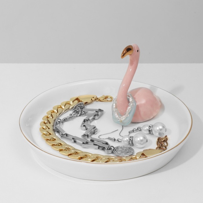 Подставка универсальная керамика «Фламинго» 14×7,5, цвет бело-розовый