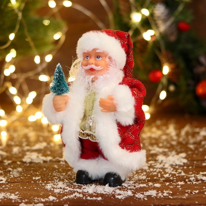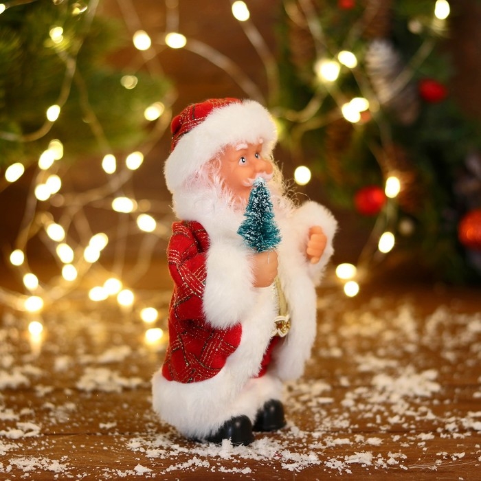 Дед Мороз "В узорчатой шубке с ёлочкой" 19 см, бело-красный