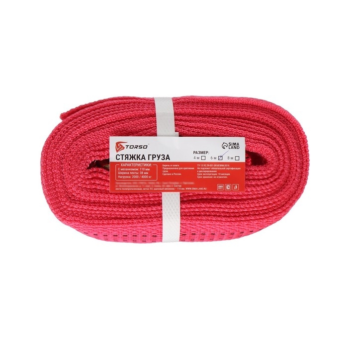 Стяжка груза TORSO с механизмом 110 мм, ширина ленты 38 мм, нагрузка 2/4 т, длина 6 м