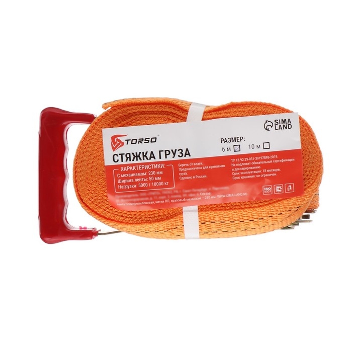 Стяжка груза TORSO с механизмом 230 мм, ширина ленты 50 мм, нагрузка 5/10 т, длина 6 м