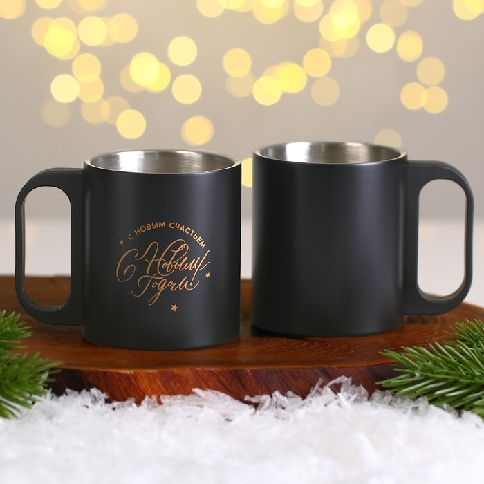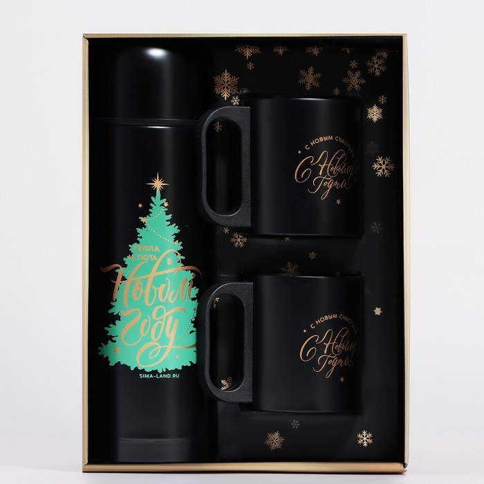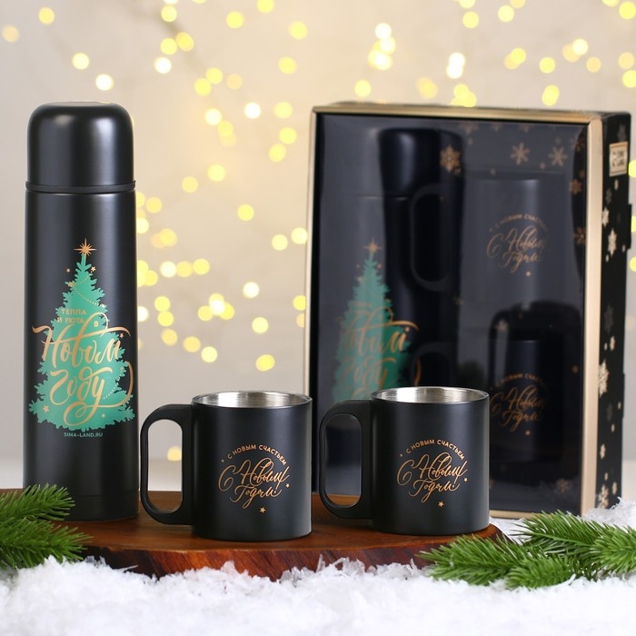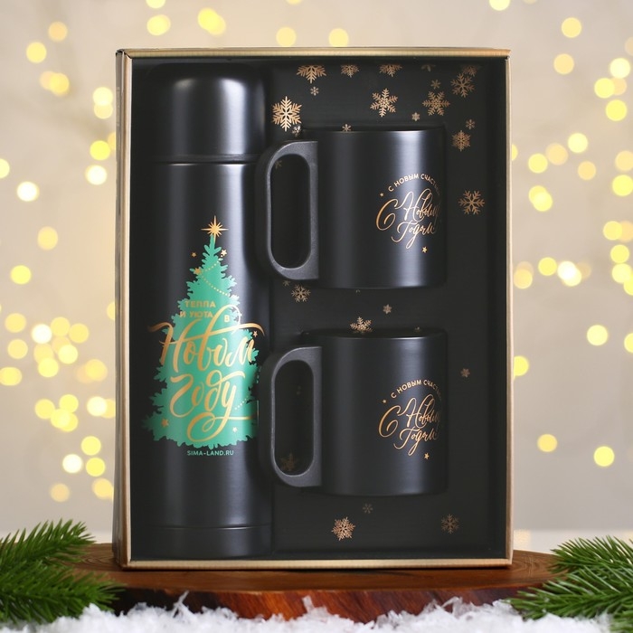 - Две кружки с новогодним дизайном станут прекрасным дополнением к термосу.