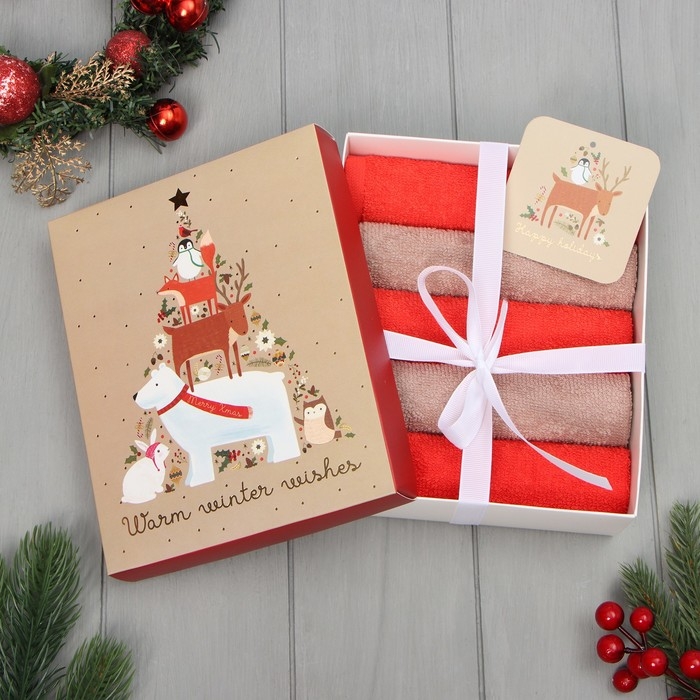Набор махровых полотенец Этель "Звериная ёлка" 30х30 см -5шт, 100% хл, 340гр/м2