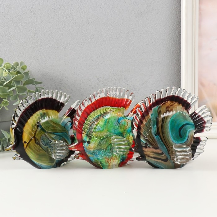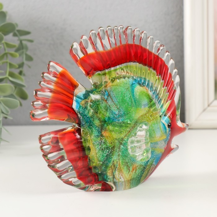 Сувенир стекло "Рыба с меланжем внутри" под муранское стекло 14х12х6 см МИКС