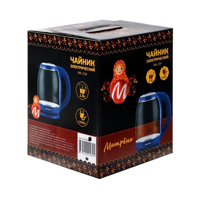 Чайник электрический "Матрёна" MA-154, стекло, 1.8 л, 1500 Вт, синий