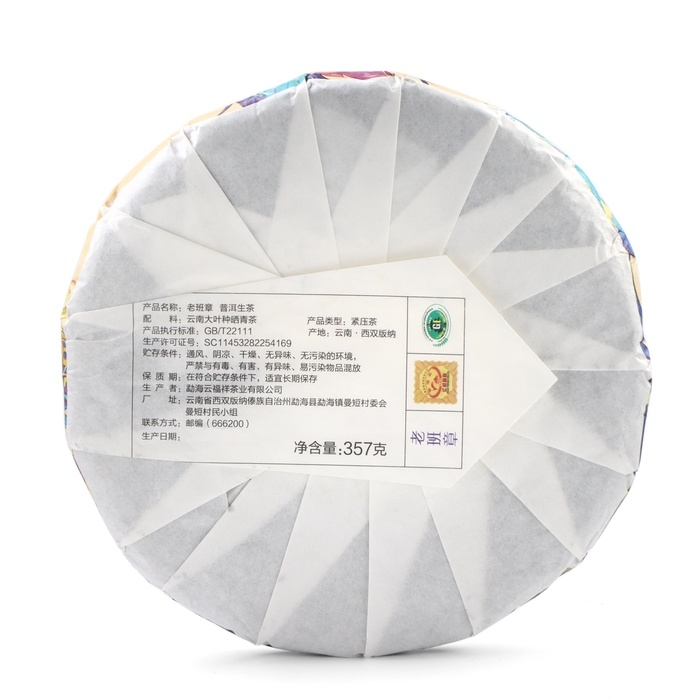 Чай китайский зелёный "Шен Пуэр Лаобаньчжан", 357 г, 2022 г, Мэнхай, блин