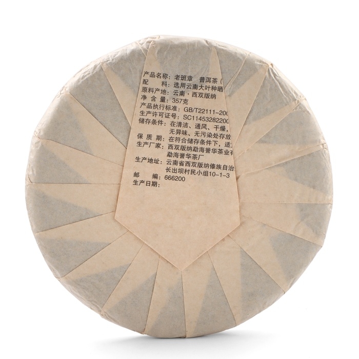 Чай китайский зелёный "Шен Пуэр Лаобаньчжан", уезд Мэнхай, 2021 год, блин, 357 г