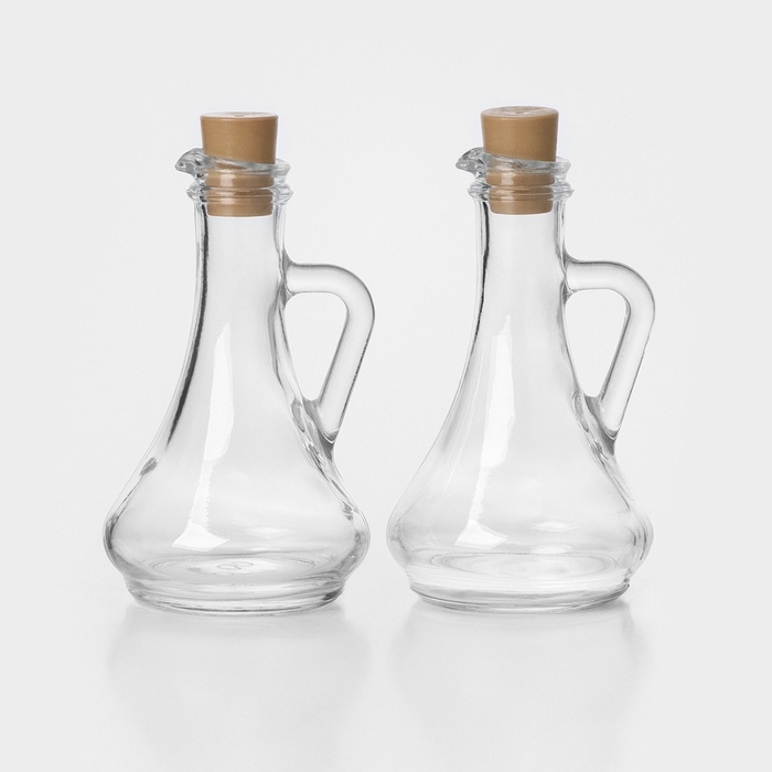 Набор стеклянных емкостей для масла-уксуса с пластиковой пробкой «Оливия», 260 мл, 2 шт